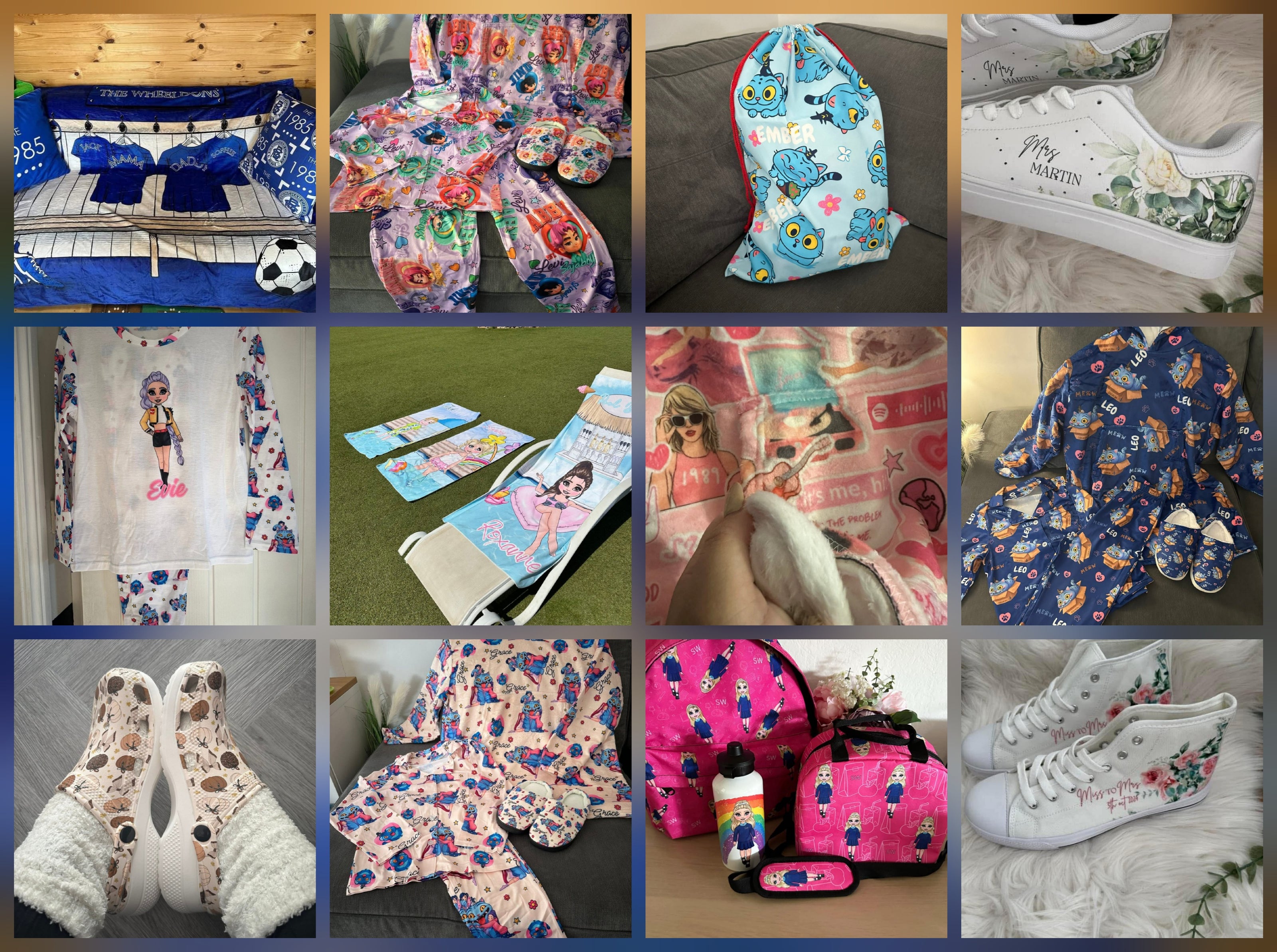 From cosy blankets and comfy PJs to trendy crocs, travel bags, towels, oodies, fleece pullovers, and even suitcase covers, every item is made to stand out.